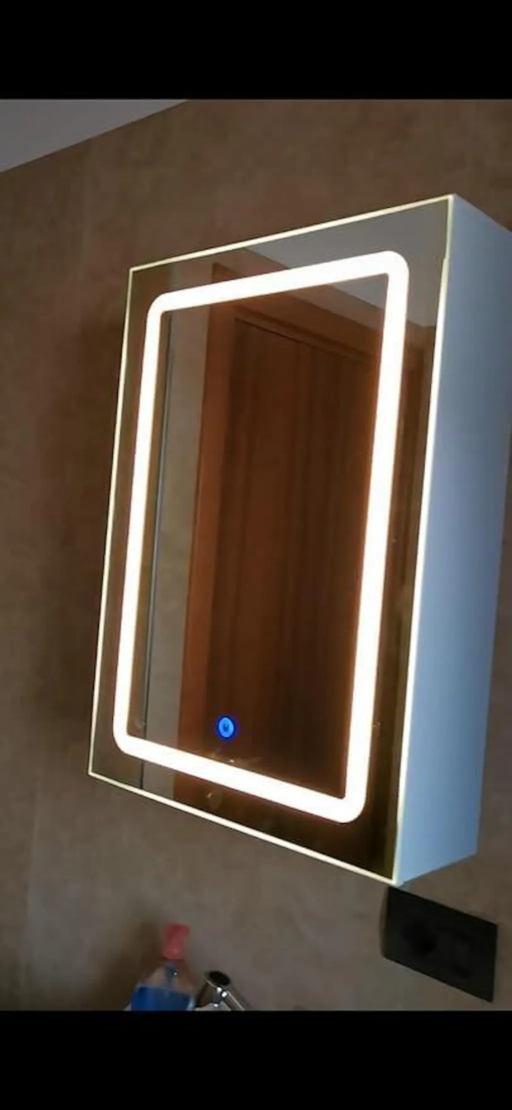 Habe diesen Schrank passend zu unserem großen Spiegel mit Licht gekauft. Er sorgt für zusätzliches Licht und hat einen hochwertigen Spiegel. Auch die Aufteilung im inneren ist super, weil auch höhere Sachen hinein passen! Die Regale haben bessere Abstände zueinander, was bei den meisten Schränken nicht der Fall ist. Also ich bin super zufrieden mit dem Schrank und der Preis stimmt auch!!!