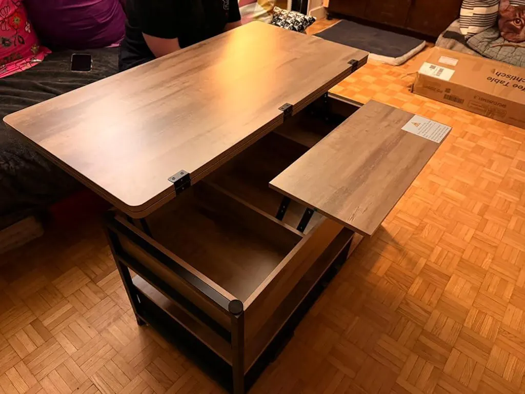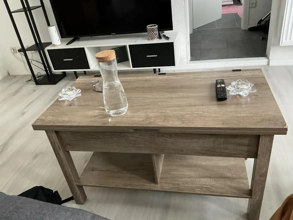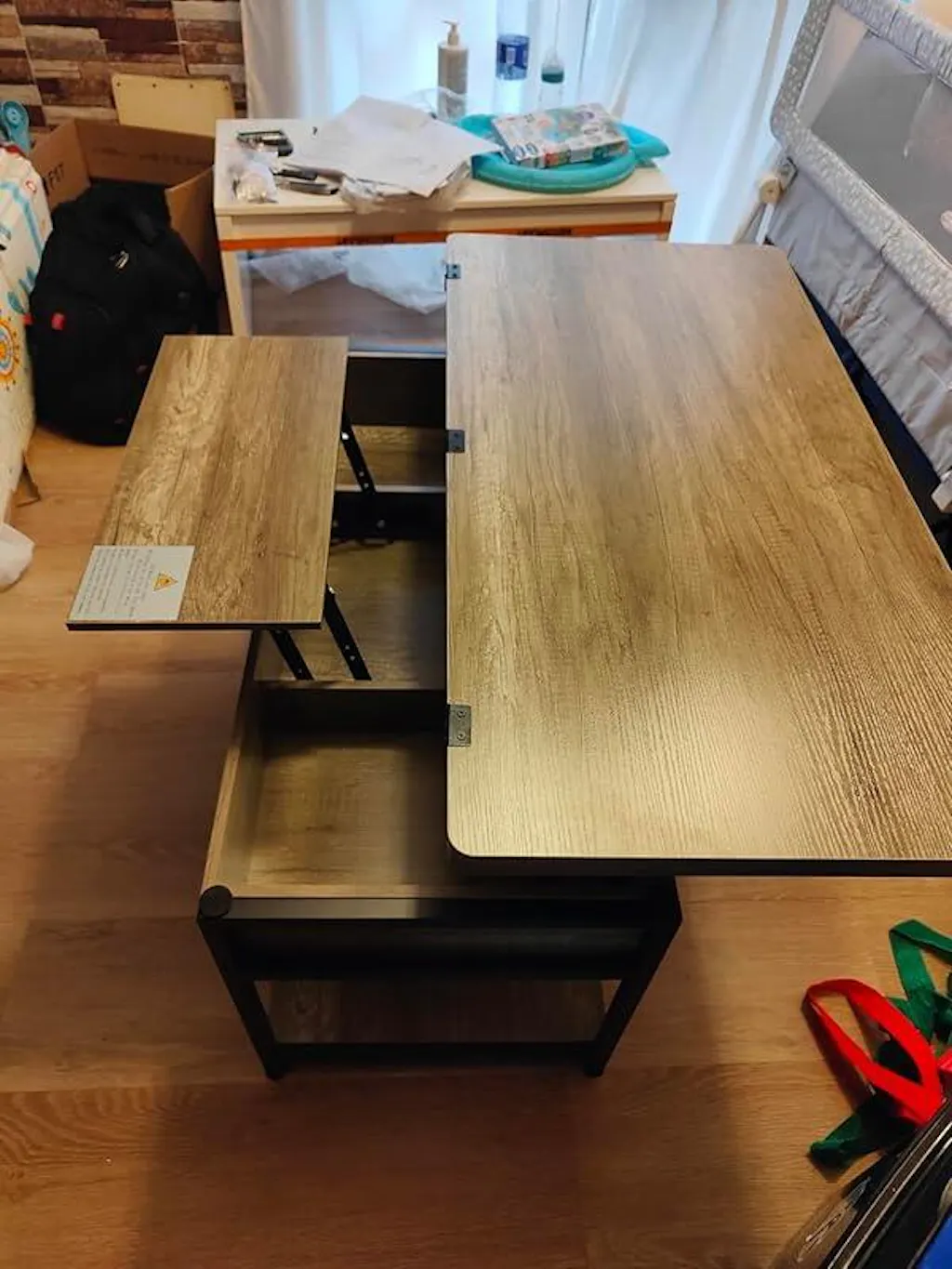 Aber der Tisch war genau das was ich mir vorgestellt habe. Fakt, der Tisch ist super. Er ist schön stabil,lässt sich super hochklappen und erweitern. Ich liebe diesen Tisch, die versteckten Fächer sind klasse. Aufbau war laut Aussage von meinem Freund auch kein Problem für eine Person. Ich kann diesen Tisch mit gutem Gewissen weiterempfehlen.