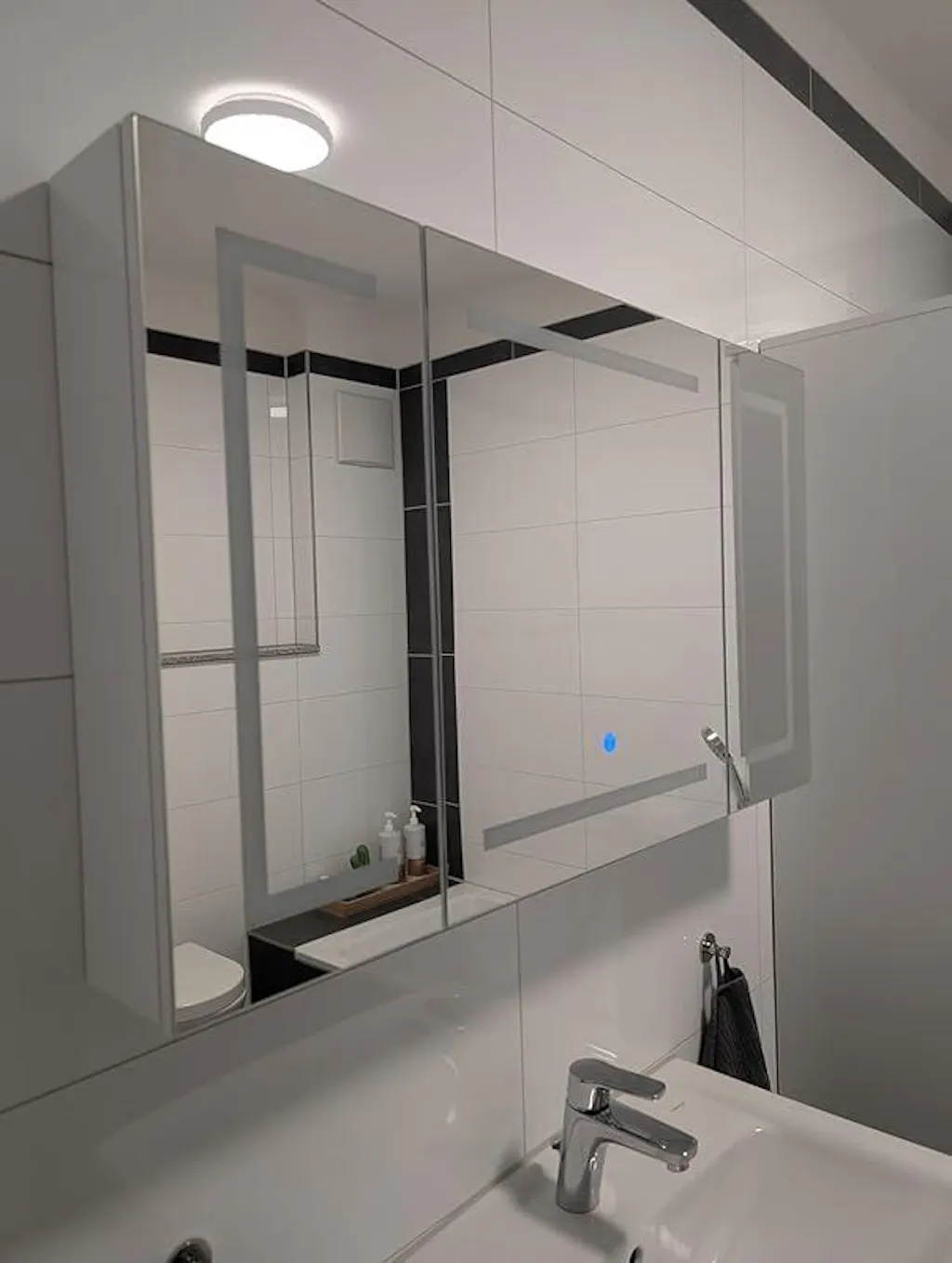 Der Spiegelschrank ist nicht nur praktisch, sondern sieht auch sehr elegant aus. Die Spiegel sind klar und verzerren nicht, was für mich sehr wichtig ist.