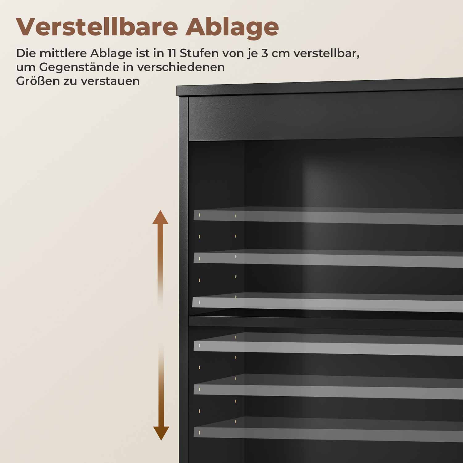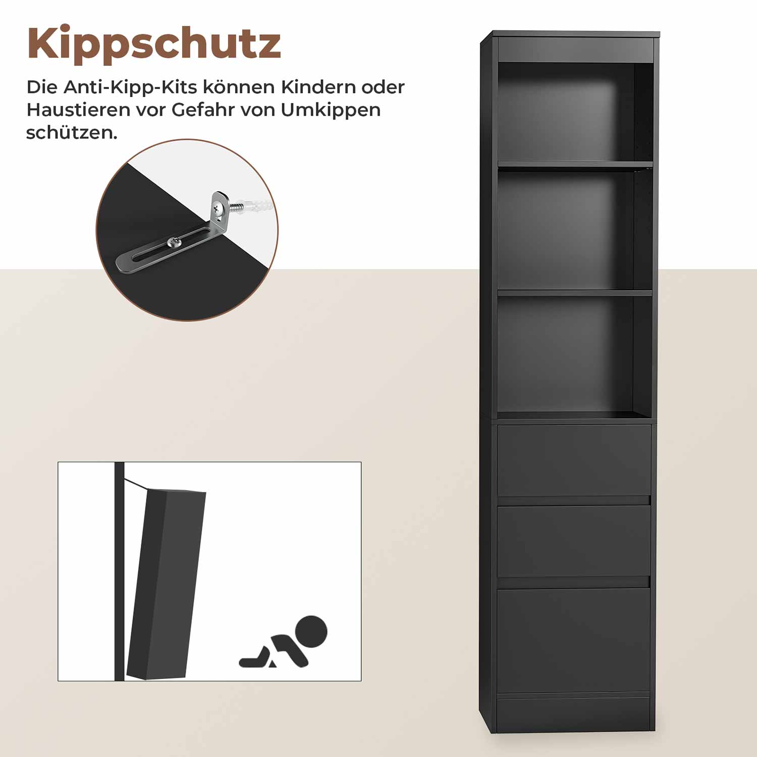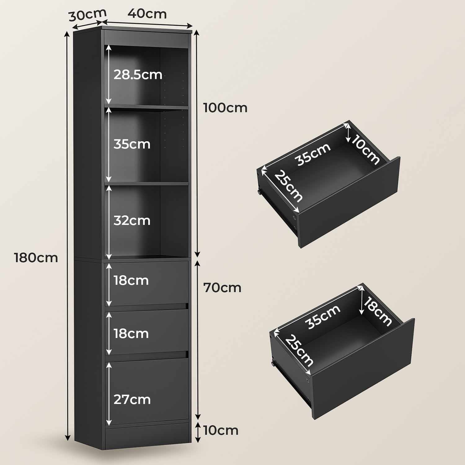 Badezimmerschrank Hochschrank 180x40x30cm mit 3 Schubladen Standregal mit verstellbaren Regalen Schwarz
