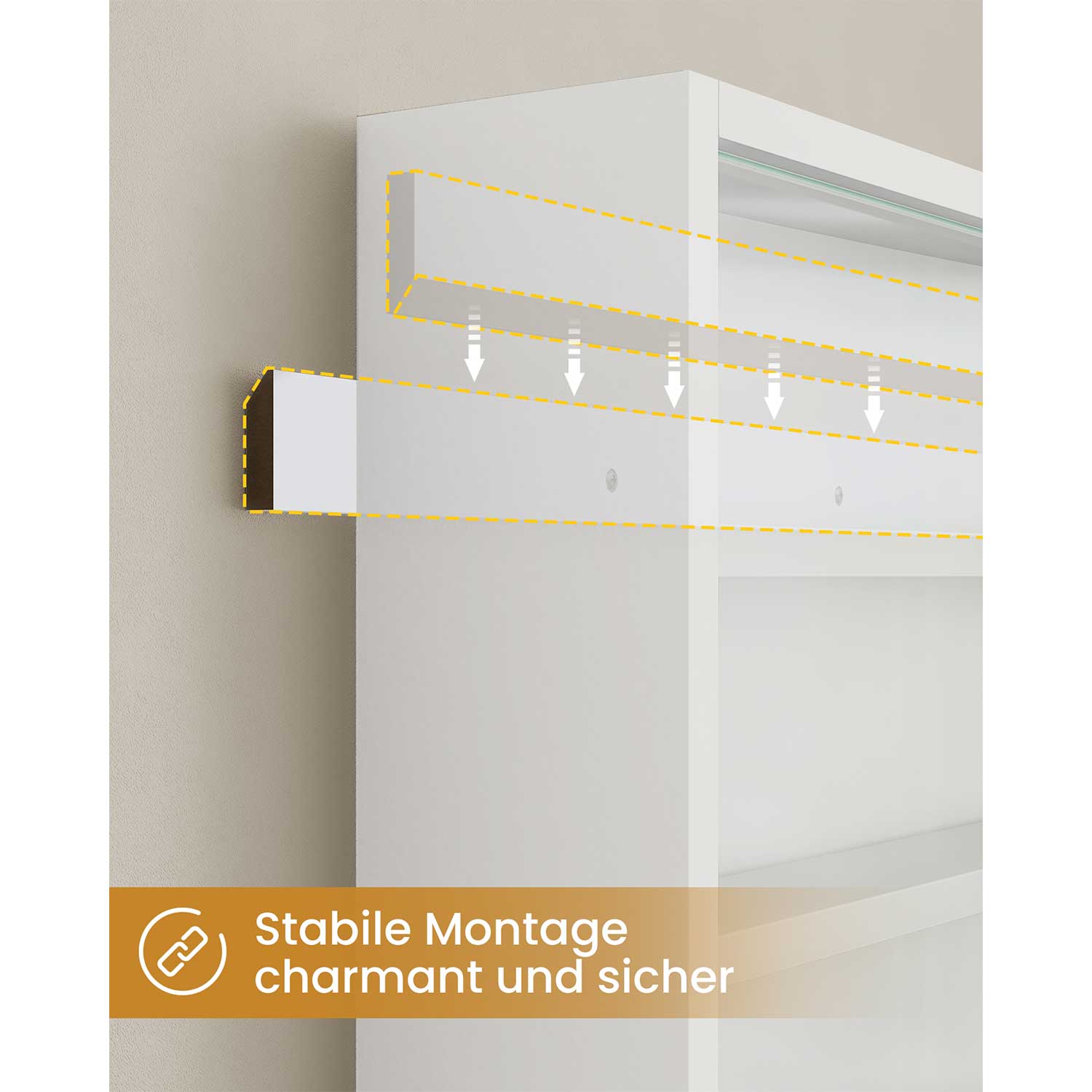 Wohnzimmer-Wandvitrine für Sammlungen, mit Doppelglastüren, 5 Einlegeböden, LED-Beleuchtung, weiß